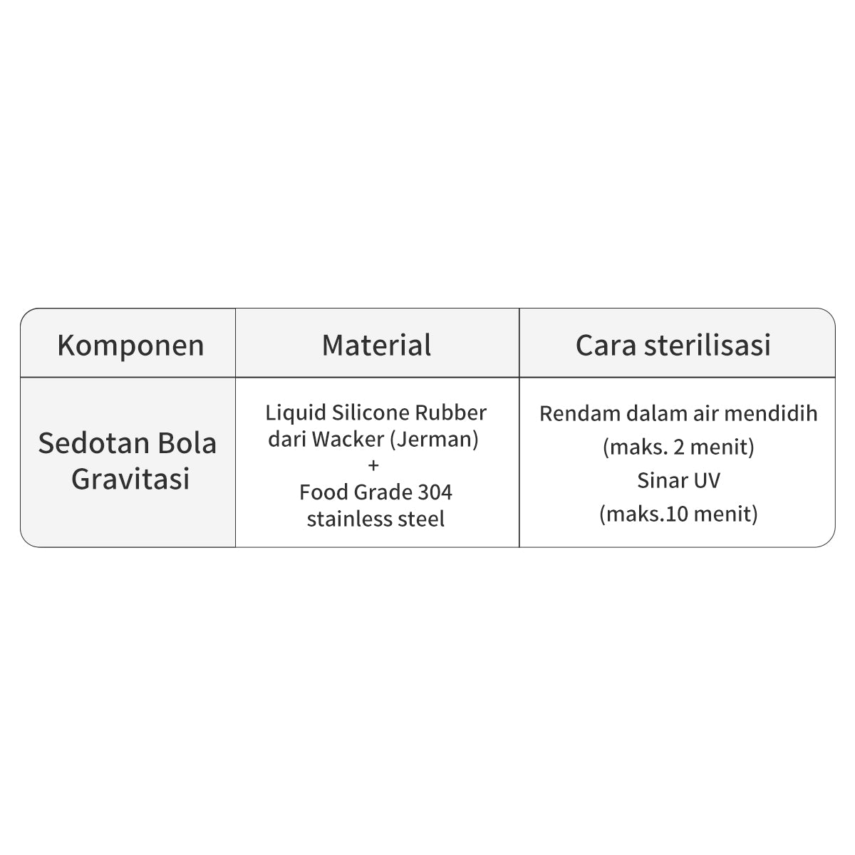 - Material dot liquid silicone rubber dan material botol PPSU impor dari Jerman